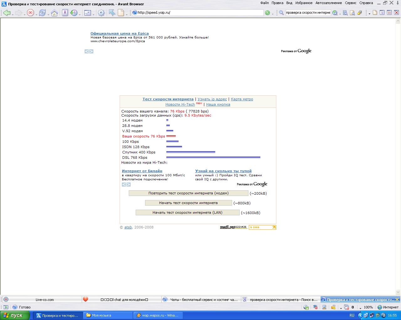 тест скорости - Ваша скорость 210.03 Kbps