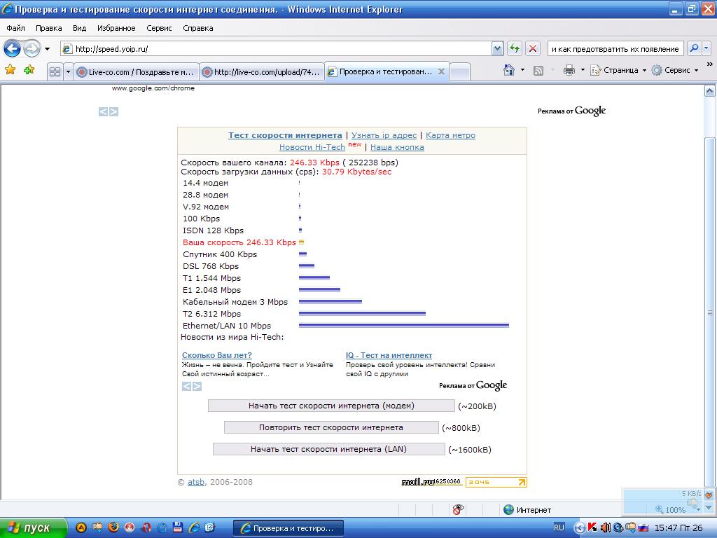 Скорость вашего канала: 229.69 Kbps ( 235207 bps)